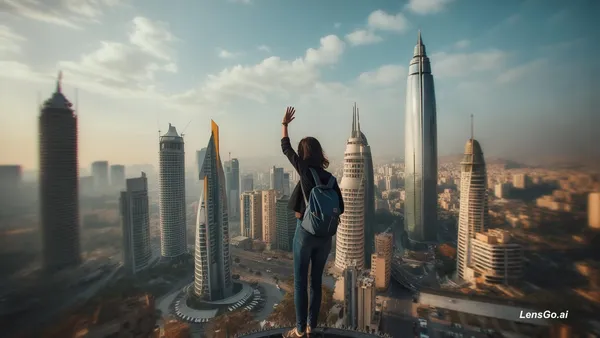 AI Image: The person spins around slowly with the camera, showing the towering sweet structures of the city wh
