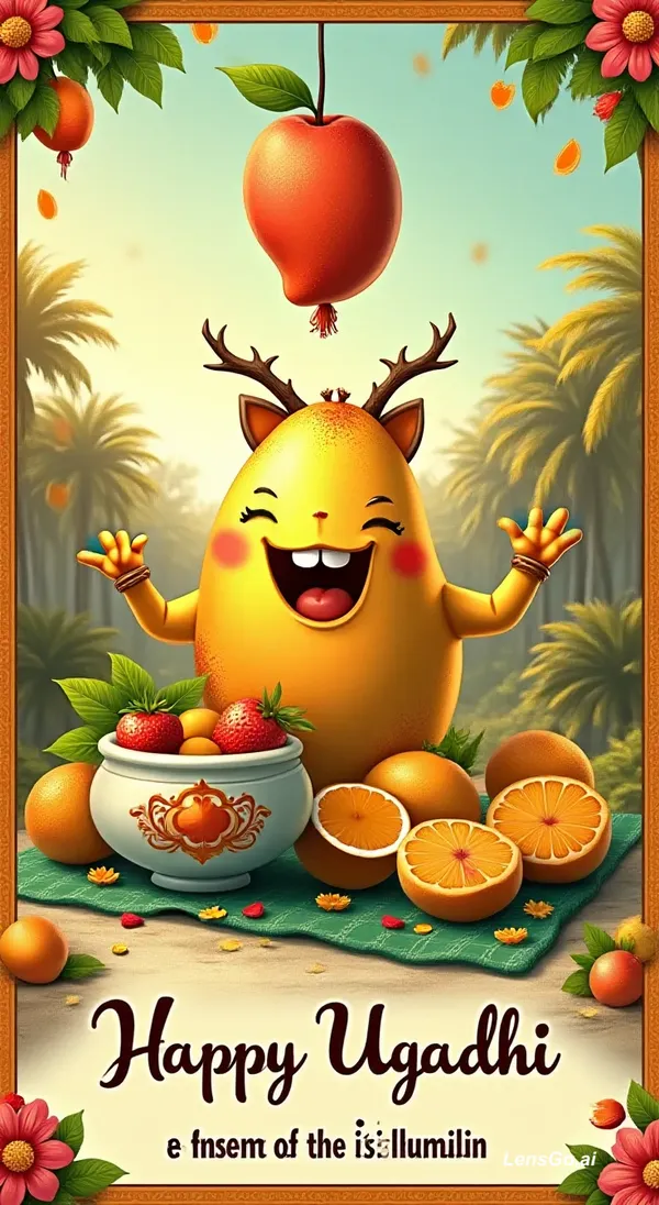 AI Image: Make a video that a mango is wishing happy ugadhi to All the friends and family members.