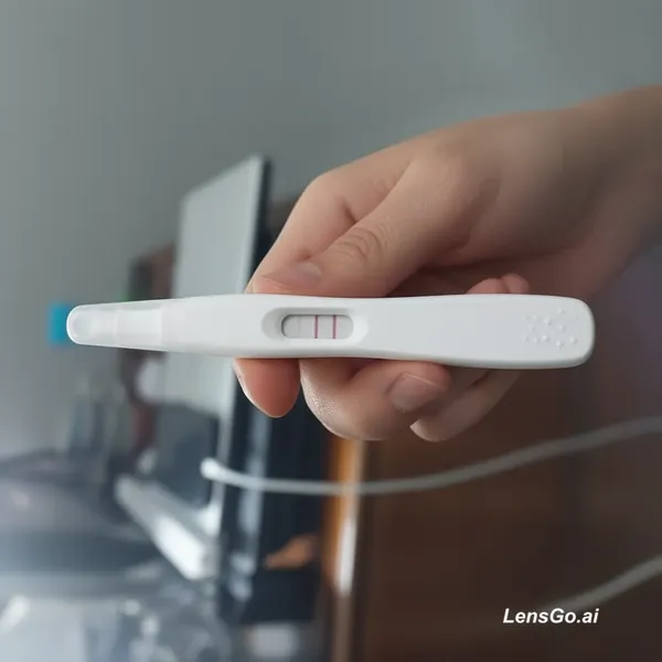 Ultra-realistic photo edit of a human hand holding a positive pregnancy test. The pregnancy test should be naturally placed between the fingers, perfectly aligned with the hand’s perspective, matching the original lighting, shadows, skin tones, depth of field, and camera grain. The test display clearly shows a positive result (two visible lines). Maintain photorealism, high resolution, accurate reflections, soft natural light, seamless integration, no distortion, no extra fingers, no artifacts, documentary-style photography.