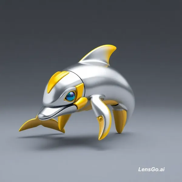 AI Image: Create a 3D Pixar style image of a transformer dolphin in silver, yellow and shiny show it to be ver