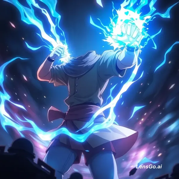 AI Image: anime cinematic story, weak boy becomes powerful, magic academy, emotional scenes, glowing blue ener