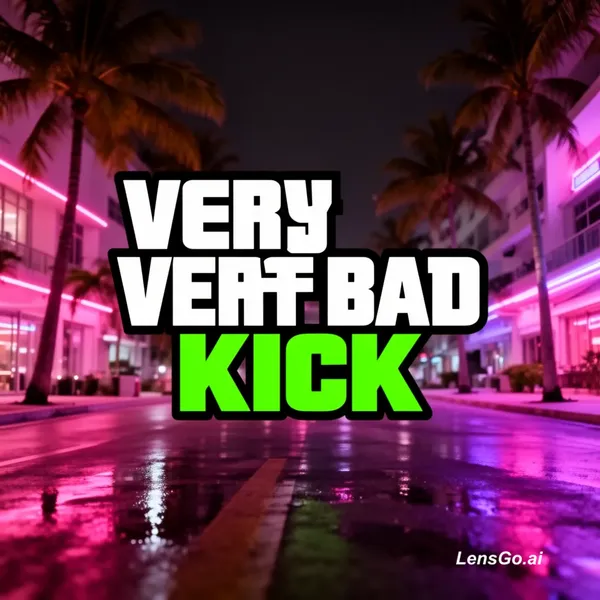 AI Image: GTA style cinematic logo, “VERY BAD KICK” in bold uppercase typography inspired by Grand Theft Auto