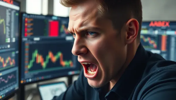AI Image: hyper realistic Young white american trader very angry infront of his trading monitor with trading m
