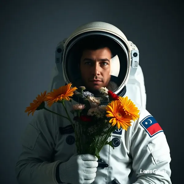 AI Image: Studio portrait of an astronaut holding flowers, dramatic lighting