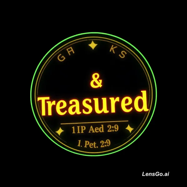 Chosen & Treasured (1 Pet 2:9) Midjourney Prompt: "Bold POD sticker pack: 'Chosen & Treasured - 1 Pet 2:9' in Cormorant Garamond, VIP badge, neon glow on dark, Gen Z affirmation, die-cut style --ar 1:1 --v 6"