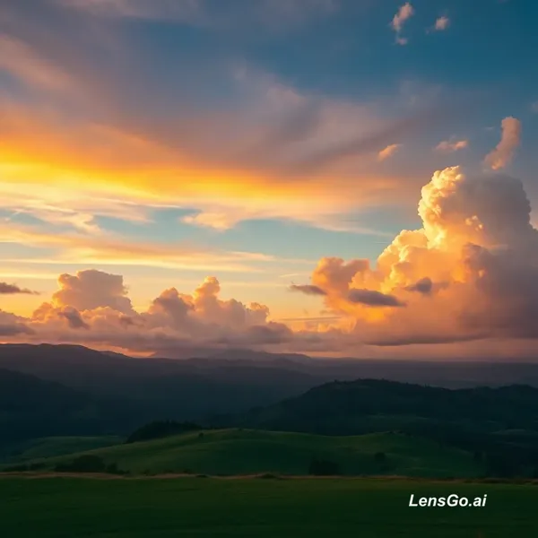 AI Image: Breathtaking cinematic landscape photo, golden hour lighting, dramatic clouds, vibrant colors, ultra