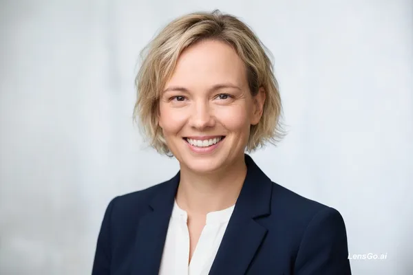 AI Image: Professional LinkedIn headshot photo, natural lighting, clean background, confident smile, studio qu