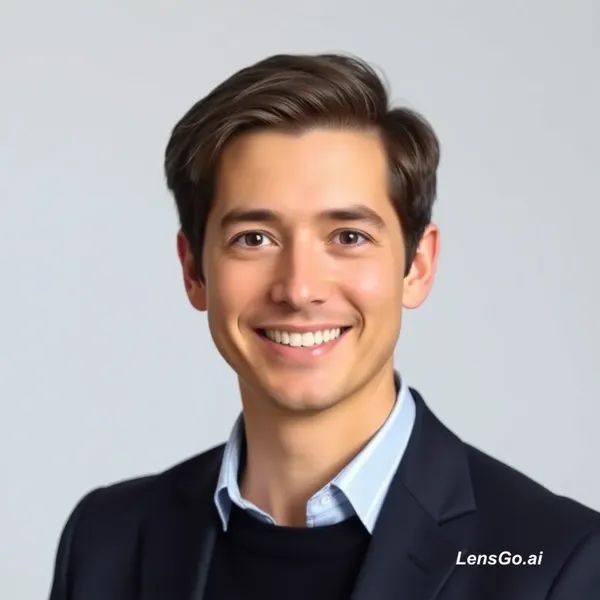 AI Image: Professional LinkedIn headshot photo, natural lighting, clean background, confident smile, studio qu