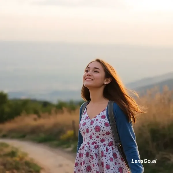 AI Image: Beautiful girl walking saying to the air I'm at peace