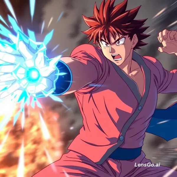 Gojo Satoru anime style, punching from left to right, fast motion, blue energy aura, cinematic lighting, slow motion impact, high quality anime fight scene