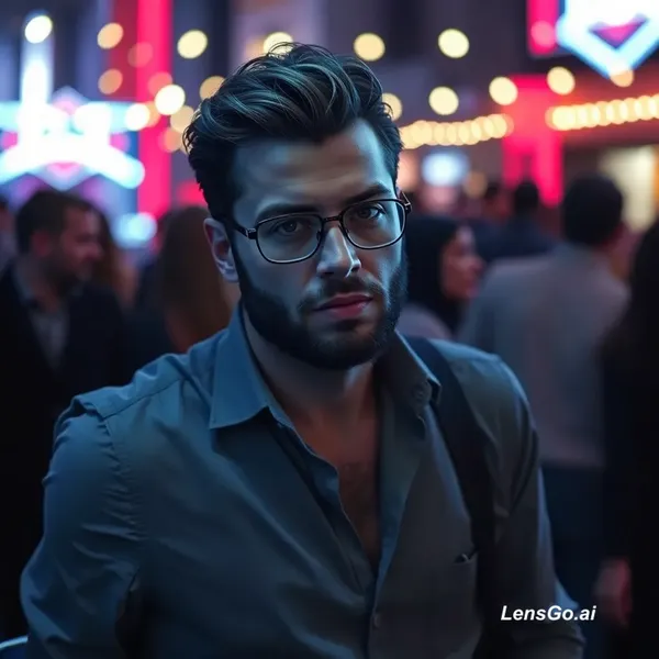AI Image: Gib mir mehrere Szenarien von diesem Mann. Bevorzugt ist ein Szenario im Nightlife Szenario er soll