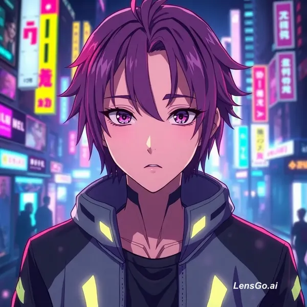 AI Image: “Transform this anime character into a futuristic cyberpunk style, glowing neon city background, cin