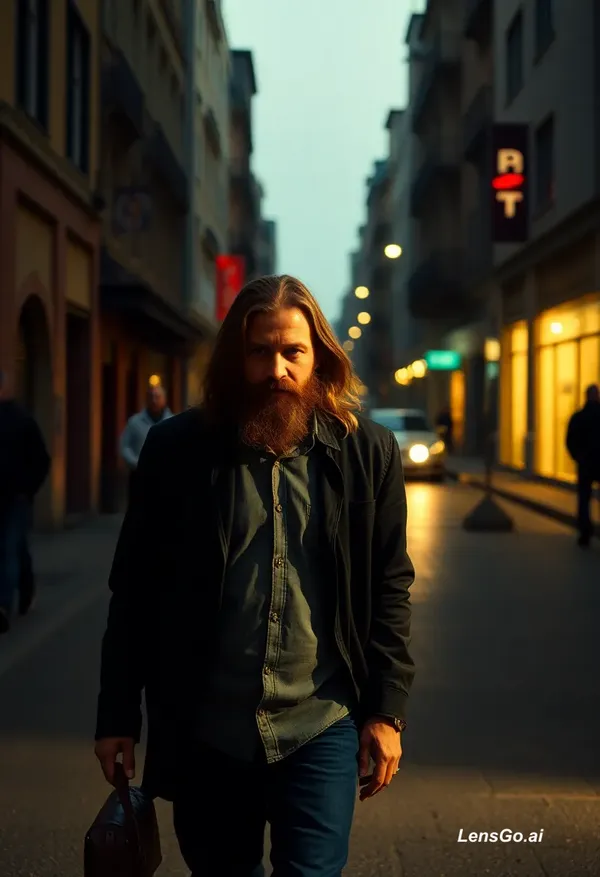 AI Image: long hair man walking down the street