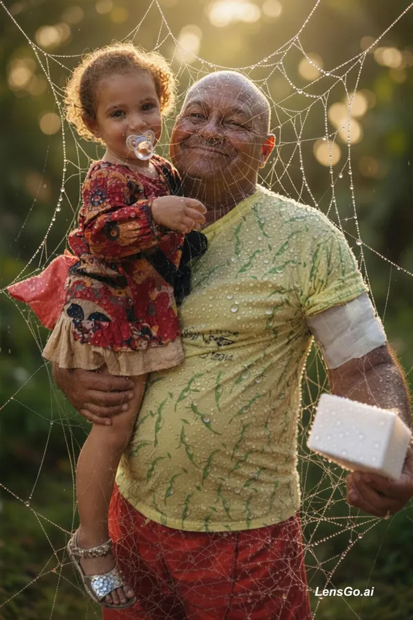 AI Image: Macro photograph of morning dew on spider web, bokeh background