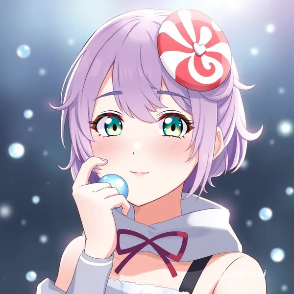AI Image: A super sweet anime waifu inspired by peppermint and ice, no weaponry, no powers, just who she is as