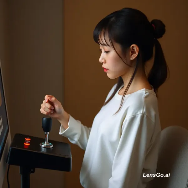 AI Image: The right girl use her left hand to keep on hardly rubbing a joystick attached to the bottom right c