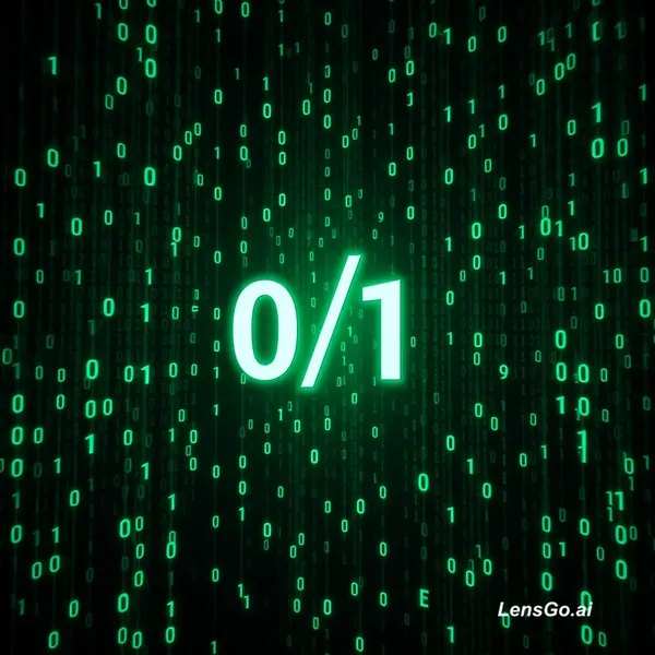 AI Image: "Create a striking professional logo for "0/1 - Tech" that emerges dramatically from a cascade of fa