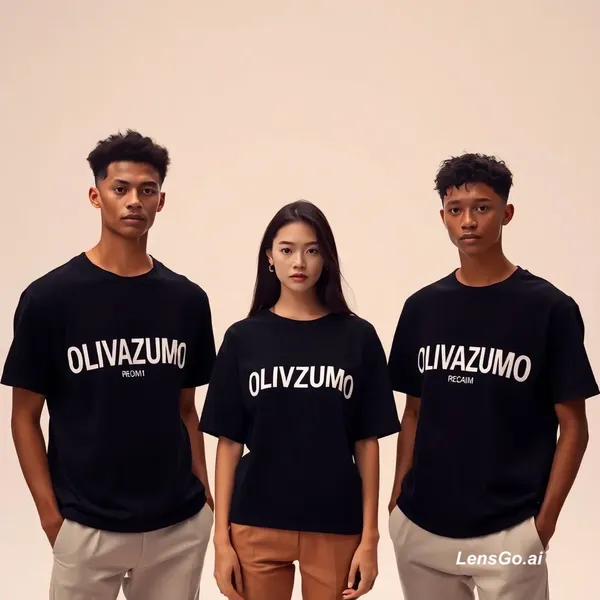 An advert for a luxury perfume brand, minimalist fashion editorial photoshoot, 2 models wearing t-shirt with bold "OLIVAZUMO" typography, Use Image of font attached clean style, one Asiatic female with boring face in the middle of the studio, pastel toned background with smooth gradient, soft shadows and high-end studio lighting, inspired by Balenciaga + Fear of God campaigns, fashion editorial lookbook aesthetic, ultra sharp focus, Canon EF 50mm F/1.4, 8k, shot for Vogue magazine, contemporary streetwear campaign.