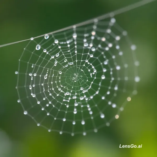 AI Image: Macro photograph of morning dew on spider web, bokeh background
