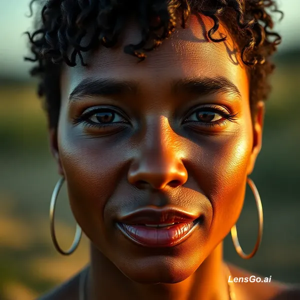 Transform this portrait into an ultra-high-resolution 8K (7680x4320) image with Canon EOS R5 professional digital camera quality. Apply modern moderated sunlight lighting - soft diffused natural light like golden hour, avoiding harsh shadows. Fix white balance to neutral daylight (5200K-5600K) for natural skin tones. Enhance skin quality with realistic texture - sharp pore detail, natural micro-contrast on lips and eyes, no artificial smoothing. CRITICAL: Add natural goosebumps (piloerection) on