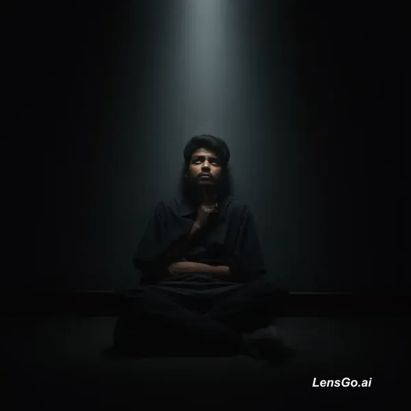 AI Image: Cinematic 9:16 image, young person sitting alone in a dark room with a single beam of light on their