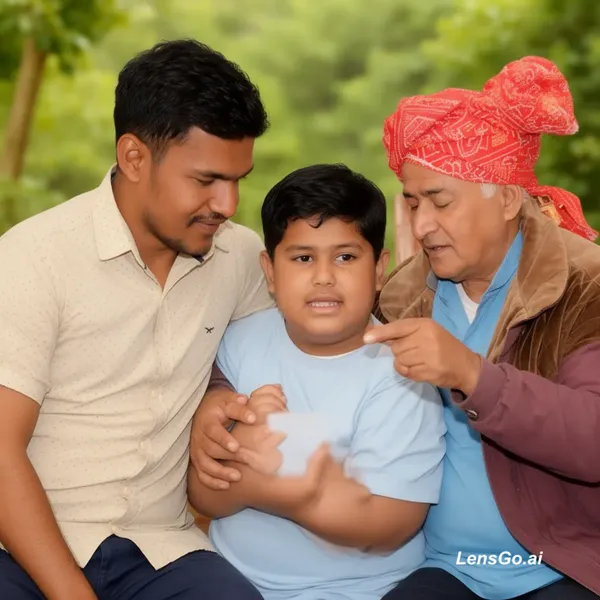 AI Image: Dada apna pota ko aachi baat samjhate hue