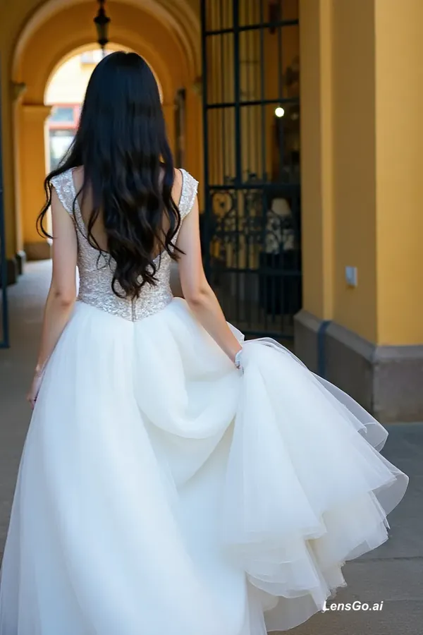 AI Image: I want to walk video like a princess, completely straight the background should remind the same, and