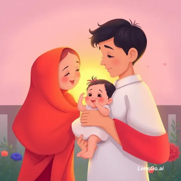 AI Image: Title: “Baby’s Love for Baba” Early in the morning, the sun slowly rises. A loving father gets ready