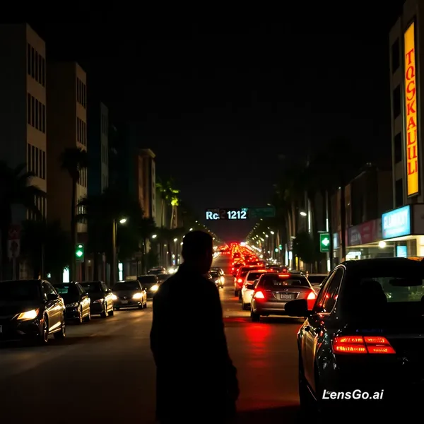 AI Image: Ato 1 - A rua volta a respirar Los Angeles. Noite. O som de motores turbinados ecoa entre prédios ba