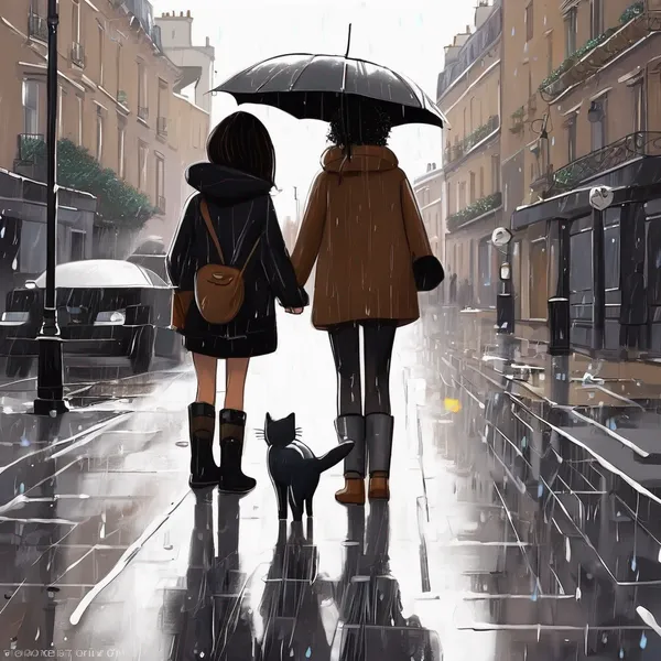 Peut tu créer une animation pixar de moi et ma copine elle a les cheveux noir lisse une peau blanche et moi des locks et métisser et la vidéo ce passe en marchant en ville pluie en rentrant dans notre appart ou il y a un chat qui se couche avec nous puis on rigole pendant des heures et on se met à s’endormir puis elle rentre chez son père et on s’envoie un message en disant qu’on se verra le lendemain toute cette scène ce passe le soir