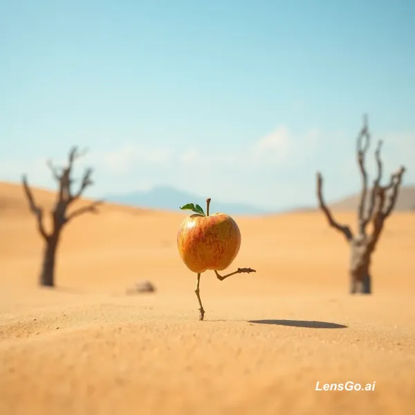AI Image: Crée une vidéo d'une pomme qui dance dans le désert