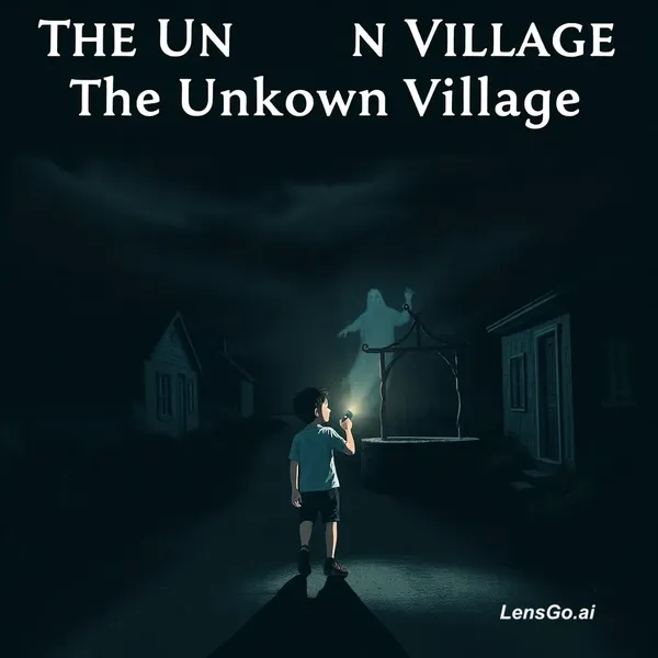 AI Image: 🎬 Title: The Unknown Village [0:00 – 0:05] Dark road… wind blowing… A boy walks with a flashlight.