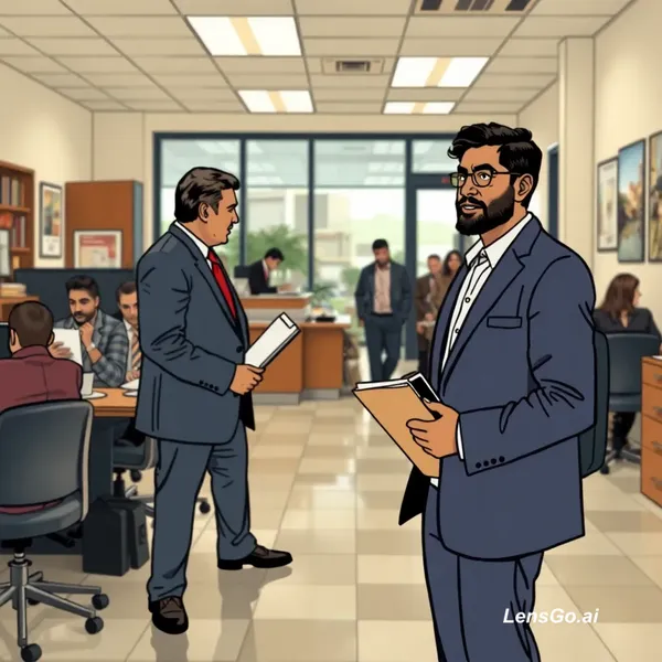 AI Image: Title: A Lesson of Respect Scene 1 – Newsroom (Day) - Camera: Wide shot of the busy newsroom, then z
