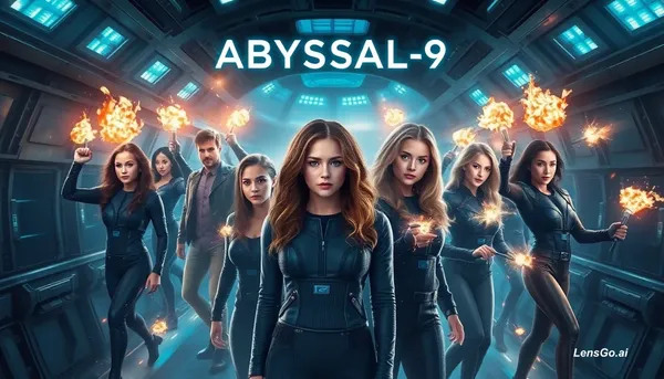 AI Image: Cinematic poster for TV series "Abyssal-9", ensemble cast like Avengers: Endgame. Isabel (brown, 20)