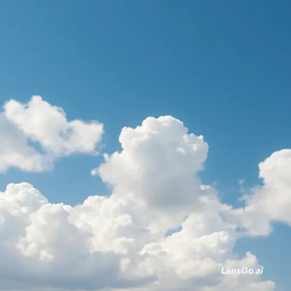 AI Image: White clouds moving across a clear blue sky quickly, timelapse style, bright daylight, fluffy cumulu