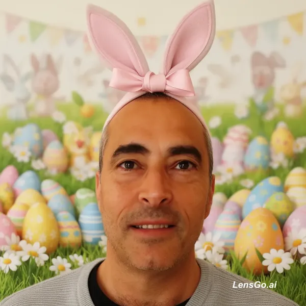 AI Image: mettre ma tête en forme d'oeuf de paques avec le noeud du ruban qui ressemble à des oreilles de lapi