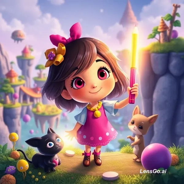 In a colorful animated world filled with floating islands and talking animals, a curious and brave young girl named Lila discovers a glowing magical pencil that can bring anything she draws to life. At first, she uses it for fun-drawing candy trees, playful creatures, and tiny helpers-but soon realizes that her creations don't always behave as she expects. One day, while trying to fix a mistake, Lila accidentally draws a mischievous shadow creature that escapes her control and begins to erase parts of her world. As chaos spreads, colors fade and her friends start disappearing. Determined to fix everything, Lila sets off on an adventurous journey across magical lands-through candy forests, upside-down mountains, and rivers of light. Along the way, she learns that true creativity comes with responsibility. With the help of her loyal flying cat companion and the lessons she's learned, Lila must face the shadow creature in a final showdown-not by erasing it, but by transforming it into something beautiful. In the end, Lila restores her world, understanding that mistakes can lead to something magical if handled with courage and imagination.