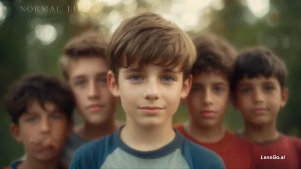 AI Image: Can you give me a 90 second episode anine where a boy lives a normal life with freinds, shot on modu