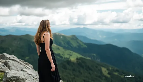 AI Image: She is on mountain with black dress
