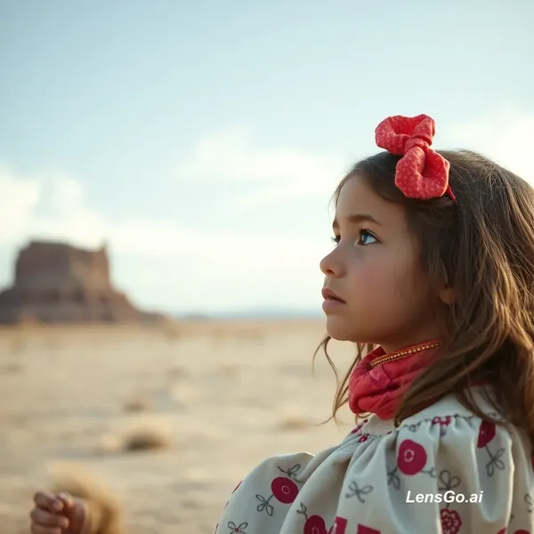 AI Image: A10 year old girl stuck in the desert creat a video