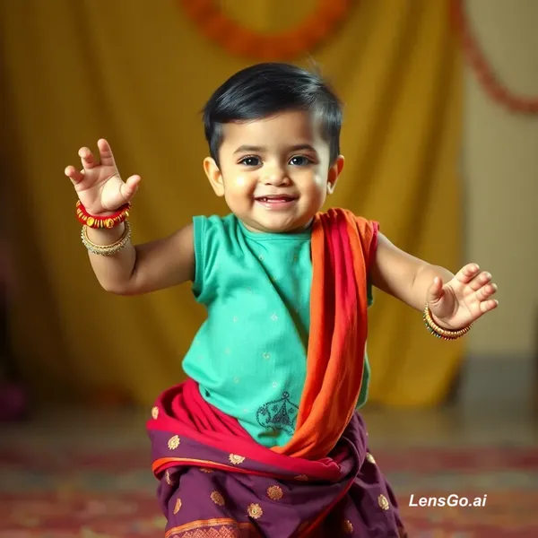 AI Image: A cute Indian toddler performing high-energy Bhojpuri dance moves. The baby is doing iconic shoulder