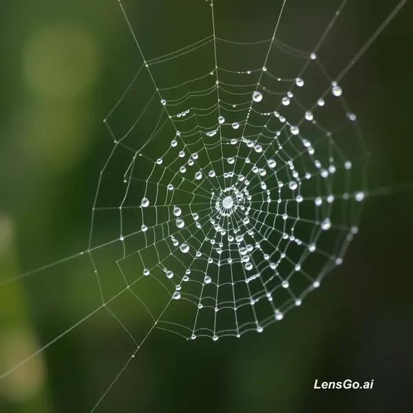 AI Image: Macro photograph of morning dew on spider web, bokeh background