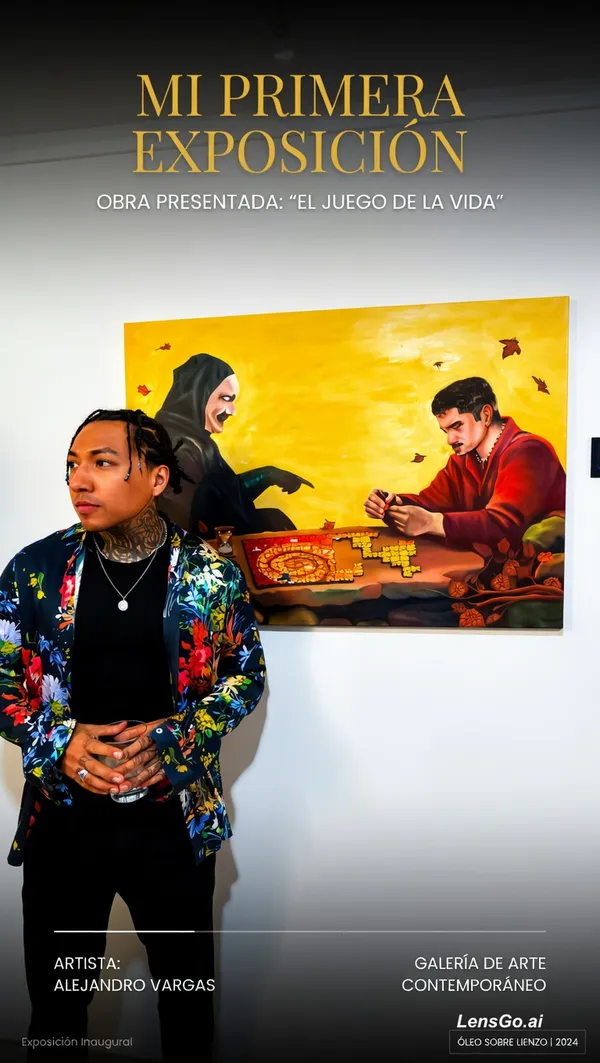 Ayúdame a crear un video de presentación de mi obra que es la pintura que está detrás mío, es mi primera exposición