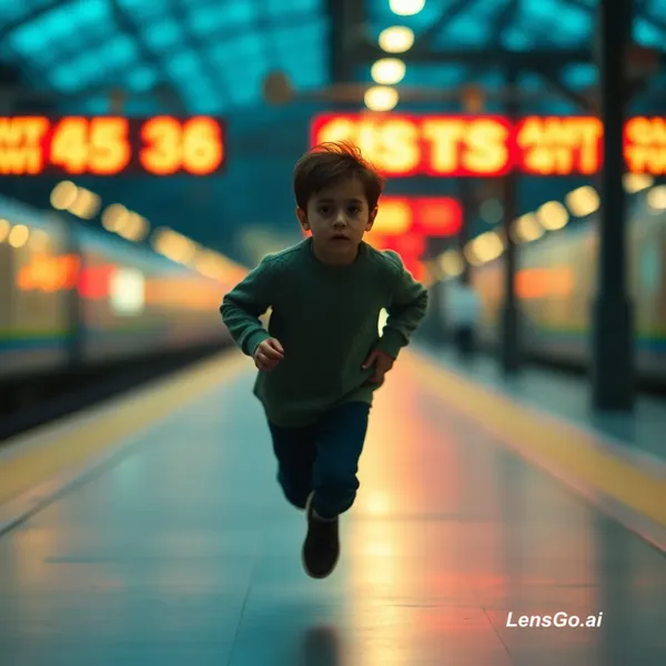 AI Image: the boy was runing at the platform and the bg was blured