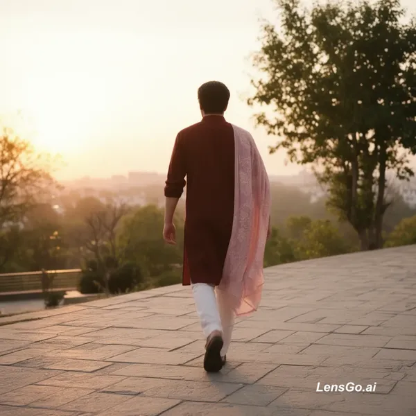 AI Image: continue walking forward, smooth natural motion, cinematic sunset lighting, realistic movement