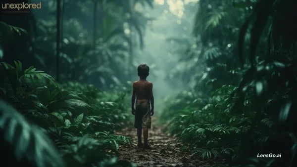 AI Image: One boy in jungle, shot on modular 8K digital cinema camera, standard prime lens, 8mm ultra-wide dis