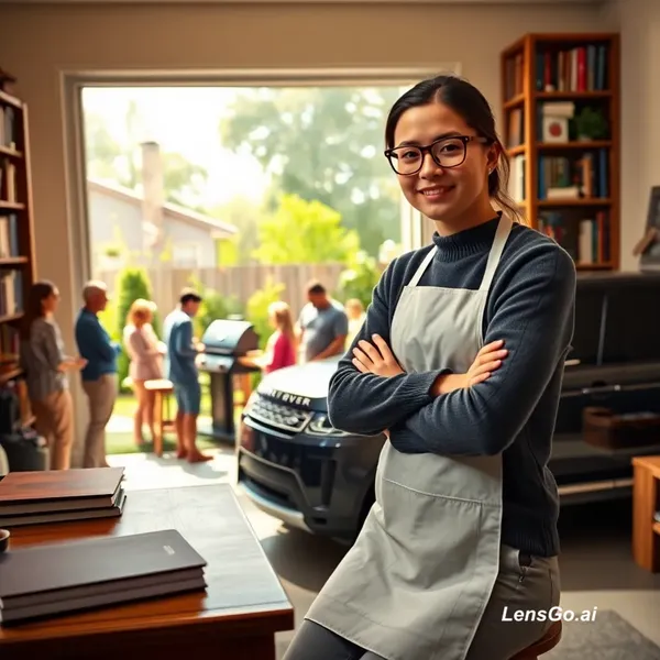 Make me a video Time Code: 00:00-00:05 Camera Move: Static medium shot Scene: A cozy study room with bookshelves and warm lighting Characters: Mia (young woman with glasses, wearing a dark grey sweater) Actions: Mia sits on the edge of a wooden desk, speaking directly to the camera with a calm, friendly expression Time Code: 00:01-00:05 Camera Move: Wide angle view Scene: A sunny suburban backyard during a neighborhood cookout Characters: Group of neighbors, a man grilling at a BBQ Actions: Neighbors socialize and drink, the man in a white apron flips burgers, a brand new black Range Rover pulls into the driveway Time Code: 00:05-00:10 Camera Move: Eye-level group shot Scene: Suburban driveway next to a luxury car Characters: Flashy man in a light blue polo and sunglasses, impressed neighbors Actions: The flashy man stands confidently with arms crossed by the Range Rover, neighbors gather around, admiring the car Time Code: 00:10-00:15 Camera Move: Medium shot with digital graphics Scene: Backyard/driveway transition Characters: Flashy man, neighbors Actions: People ask questions (speech bubbles appear), highlighting showing off wealth & social status Time Code: 00:15-00:20 Camera Move: Side profile medium shot Scene: Suburban driveway Characters: David (bearded man in blue t-shirt, khaki shorts) Actions: David stands next to an old silver Toyota Camry, eating casually, a digital tag appears: $4,000 cash