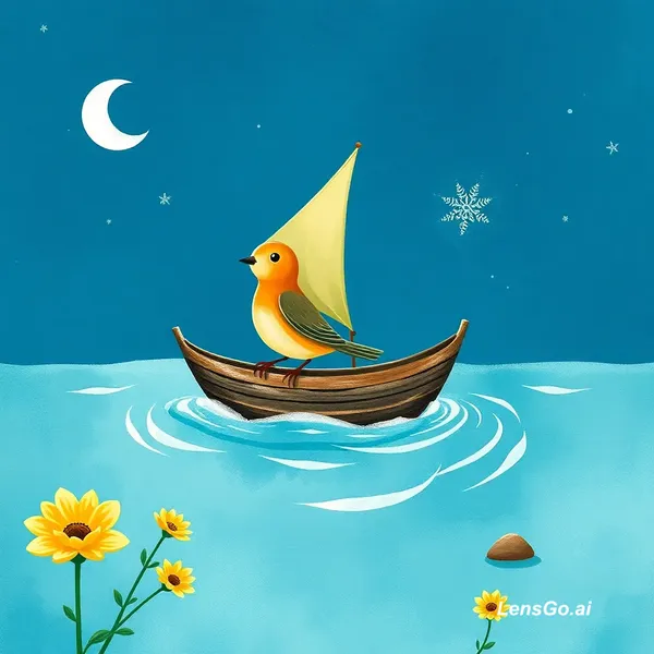 Haz una foto como si fueses un ilustrador de libros para el público infantil hasta 6 años con dibujos tipo acuarela Había una vez una rana llamada Mina. A Mina no le gustaba mucho saltar; lo que más le gustaba era construir cosas. Un día, en su charca, decidió inventar un barco usando un trozo de madera y una hoja grande como vela. Su plan era cruzar el agua para explorar la isla del centro.