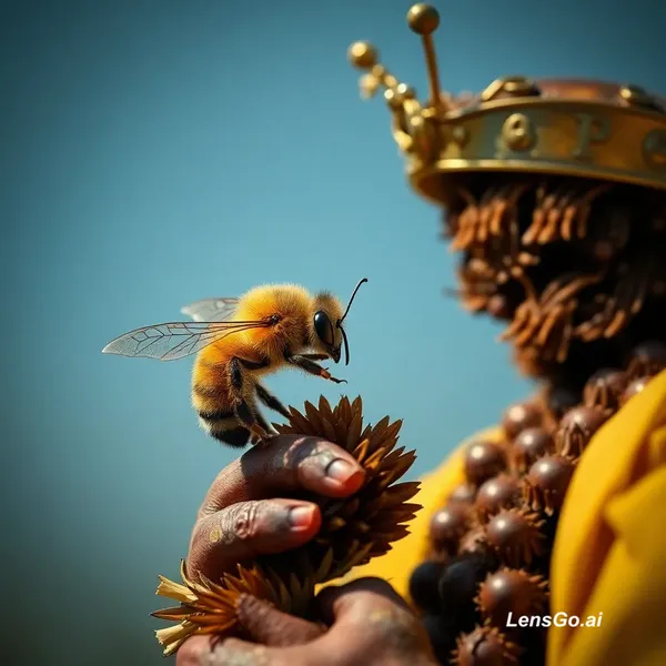 AI Image: a guy found a bee queen with a bee next to it