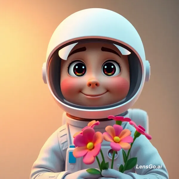 AI Image: Studio portrait of an astronaut holding flowers, dramatic lighting